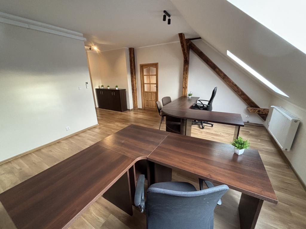 Wynajmują Państwo lokal o imponującej powierzchni całkowitej wynoszącej blisko 73 m²! (Dokładnie 72,87 m² - jest to metraż liczony bez uwzględniania skosów).To czysta korzyść finansowa! Otrzymują Państwo dużą, przestronną przestrzeń biurową o metrażu niemal 73 m², ale czynsz naliczany jest tylko za 55,39 m². To znaczy, że nie płacą Państwo za prawie 17,5 m² powierzchni! 56 m² doskonale zorganizowanej powierzchni, gotowej na przyjęcie Twojego zespołu.